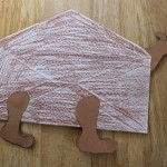 The book has several easy crafts to make, like this envelope puppet camel. (Sorry about the head! Somehow it didn’t make it into the picture). The kids colored the envelope while I drew the legs, head and neck which we attached with staples.